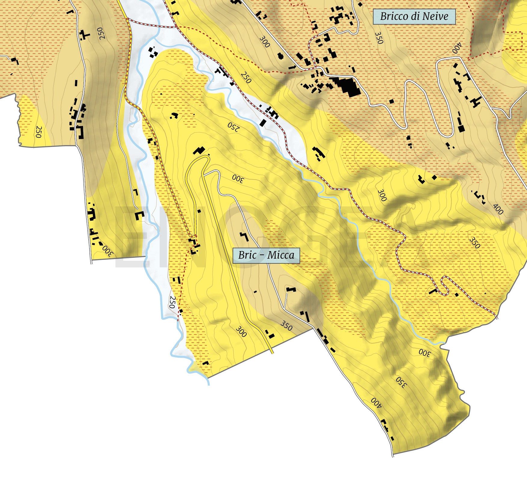 Situata all’estremo opposto del Settore Sud-Est di Neive rispetto a Canova, questa menzione – come del resto tutte le altre che fanno parte di questo stesso Settore – trova le sue migliori posizioni sul versante rivolto a sud, in direzione di Treiso e di Neviglie. Qui nascono i vini di più lunga tradizione produttiva, che di norma esprimono un carattere meno vigoroso rispetto ai Barbaresco di Serraboella e del Bricco di Neive. Per questo necessitano di un minore periodo di affonamento in bottiglia per raggiungere la piena maturità.