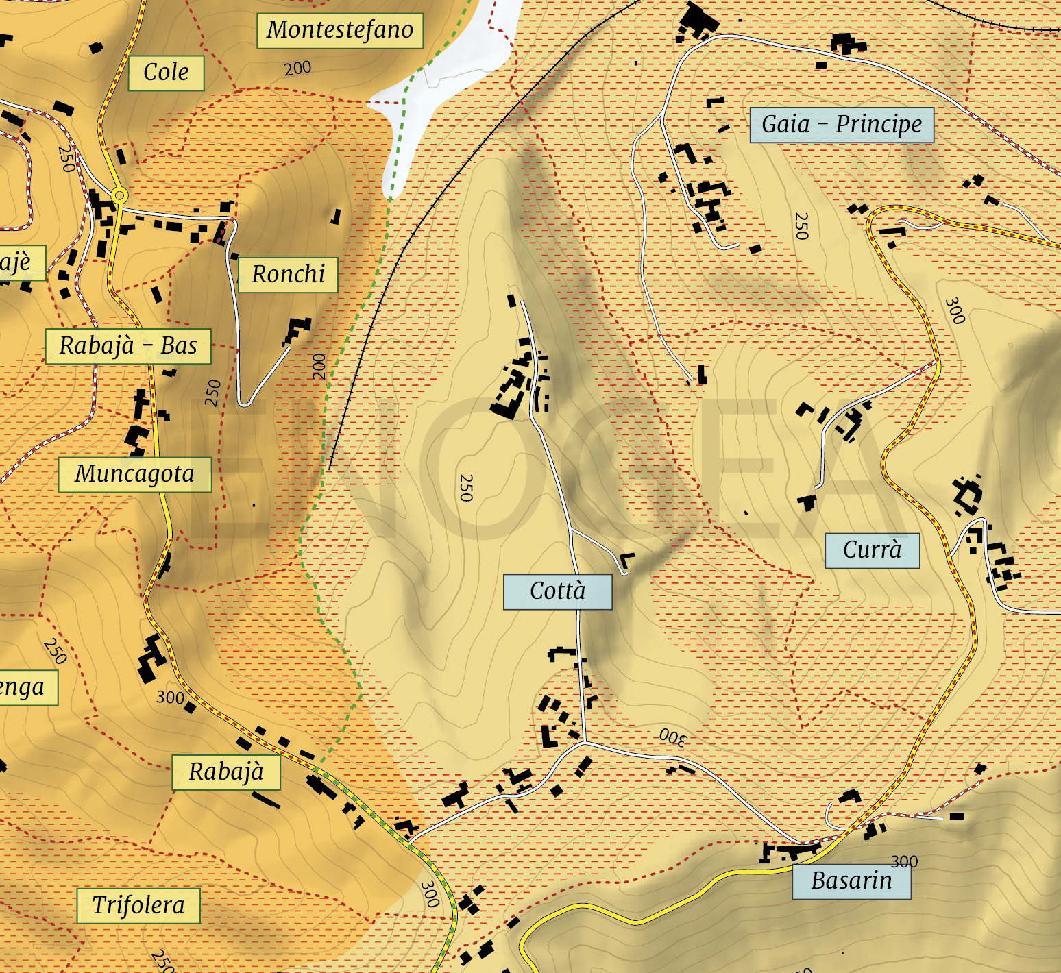 Divisa in due dalla strada che dalla borgata Masseria scende verso i Tetti, la zona dei Cottà è senza dubbio tra le più conosciute di Neive e anche una delle prime ad essere stata vinificata in purezza. Il versante che si affaccia su Barbaresco, in particolare, ha un andamento piuttosto dolce e – fatta eccezione per le vigne a ridosso del confine comunale – gode in genere di una buona esposizione. I vini che se ne ottengono – oggi come in passato – sono tra i più solidi di tutta Neive, senza con questo mai eccedere nella densità e nel vigore del tannino.