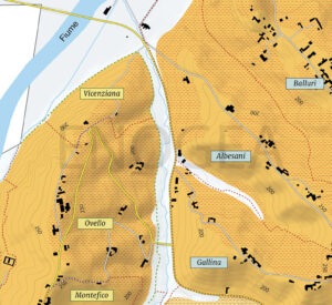 Situata all’estremo nord del crinale dell’Ovello, e dunque del territorio comunale, la menzione Vicenziana gode di esposizioni in genere piuttosto fresche e non a caso la presenza del nebbiolo è meno importante che in altre aree del comune. Il Barbaresco che se ne ottiene ha in genere una struttura non molto sviluppata e un tannino a volte severo.