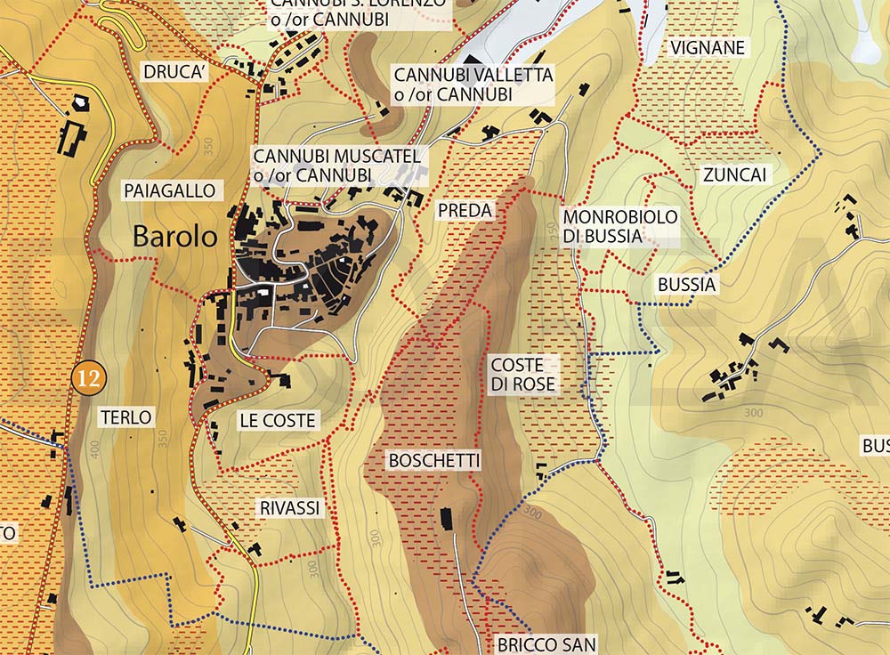 Se non lo avete trovato, vi aiuto io: di tutte è l’unica il cui crinale va da est verso ovest ed è quindi anche l’unica la cui esposizione prevalente è quasi a sud pieno. Se poi guardiamo l’estratto della carta geo-viticola possiamo notare una totale assenza di suoli evoluti unita ad una tessitura piuttosto sciolta data dalle Marne di Sant’Agata Fossili sabbiose, il che avvalora la tesi di chi vede molte somiglianze tra questa collina e quella dei Cannubi.