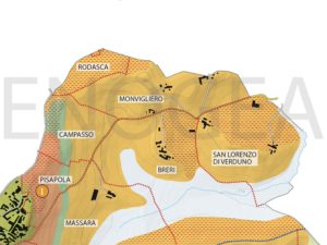 L’immagine di cui disponiamo, per quanto scattata da una certa distanza, è comunque sufficiente per collocare questo cru nel contesto della denominazione e del comune. Ruotando l’immagine si può infatti notare come Monvigliero si trovi nella parte più bassa di Verduno e proprio al confine nord della denominazione Barolo, ovvero là dove le colline si fanno più basse e arrotondate, dove le valli tra una collina e l’altra si fanno più ampie e dove la vigna lascia ancora spazio ad altre colture, prima fra tutte la nocciola (da Campasso in poi le cose iniziano invece un po’ a cambiare).
