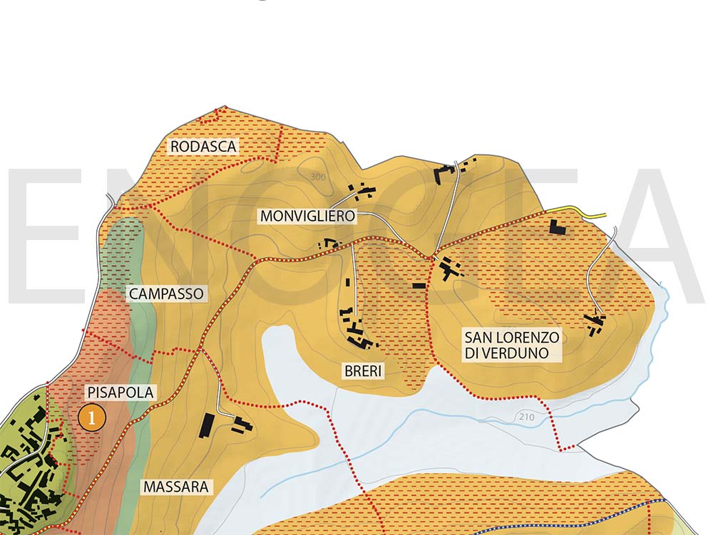 Rispetto a Breri e a San Lorenzo di Verduno la collina di Monvigliero risulta tuttavia più mossa e pronunciata, tanto che al suo interno si possono identificare almeno tre aree ben distinte (vedi la seconda immagine).