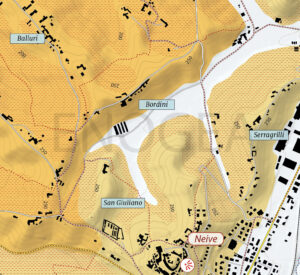 The Bordini zone, as currently defined by the MGAs rules, can be divided, in general terms, into two principal sectors. The first, which sprawls around the hamlet of Bordini, consists of a ridge line which, on one side, faces Balluri, Starderi, and, partially, Albesani. The other side faces the historic center of Neive and contains the finest sites of all for high-level Nebbiolo. The second sector, instead, extends around the Le Doti and Montesommo estates, where the best plots enjoy a western exposure. The wines, in both cases, are well structured, while the style varies from the austere and earthy character of Bordini to the more rugged personality of Le Doti and Montesommo.