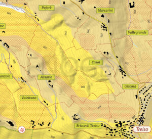 This MGA, not wrongly considered as one of the most interesting of Treiso (and among the very first to be named on a label), represents the natural extension toward the valley of the warmest part of the Giacosa MGA. Exposure is therefore similar, but the altitude is lower and the position is a little less open, which favors the vineyards near the border of Giacosa and the hamlet of Casotto, as well as those toward the border with Marcarini. Serving as a reference is the Barbaresco of the Nada family, historical standard-bearer of this MGA, whose style of wines is distinguished by rigid elegance, pronounced minerality and thus strong character.