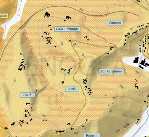 Situated between Gaia-Principe and Cottà, this small MGA extends through an area that is more uniform in terms of exposure and soils, at least in the part currently vinified and situated between the hamlet of Currà and the border with Cottà. It is hardly a coincidence that the wines of Currà and Cottà have similarities in structure and character, distinguished from the fresher, more linear wines of Gaia-Principe.