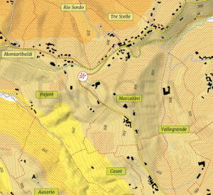 The vineyards of Marcarini can be divided into three distinct parts: one which faces westwards (first image) and where, at the boundary with Pajorè and in the lower plots known as Baudran, has some excellent sites for Nebbiolo; the second (Monte Aribaldo), dominated by the Villa Gresy (second image) where, despite the excellent exposures, Dolcetto was traditionally cultivated; the third, which faces eastward and overlooks Vallegrande (third and fourth images). The wines on the market do not always show these differences, and are generally marked by their delicate character and pleasurable immediacy.